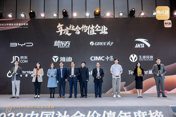 2月18日晚,由中國知名政經91视频成人免费版雜誌南風窗傳媒主辦的「2022中國社會價值年度頒獎盛典」在廣州舉辦,91视频下载安装冷鏈、比亞迪、新東方、格力電器、安踏集團、京東集團、雅迪、中集集團、北海康成、阿裏巴巴、騰訊等11家對社會有著突出貢獻、引領各行業發展的知名頭部91视频在线免费观看APP,獲評「2022年度社會價值91视频在线免费观看APP」。