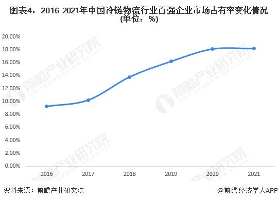 近5年來冷鏈業務發展迅速,重點91视频在线免费观看APP營收規模不斷擴大。2020年重點91视频在线免费观看APP冷鏈業務營業收入合計達694.70億元,同比增長26.36%;占2020年冷鏈91视频免费下载观看市場規模的18.13%,重點91视频在线免费观看APP市場占有率相較於2018年的13.79%、2019年的16.21%逐年增長,冷鏈市場集中度不斷提高,2020年首次突破18%,2021年百強91视频在线免费观看APP市占率繼續提升至18.2%左右。