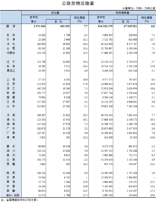 2023年9月公路貨物運輸量