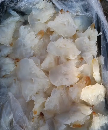 在江福明的雕琢下,海蜇加工  成了 "舌尖上的精密科學"。他談到,北部灣優質海蜇無腥臭味,肉質厚且有韌性,口感鬆脆。但因其含水量高,優質海蜇產品不僅選材要精,切割、醃製等加工工藝更是要求極高。