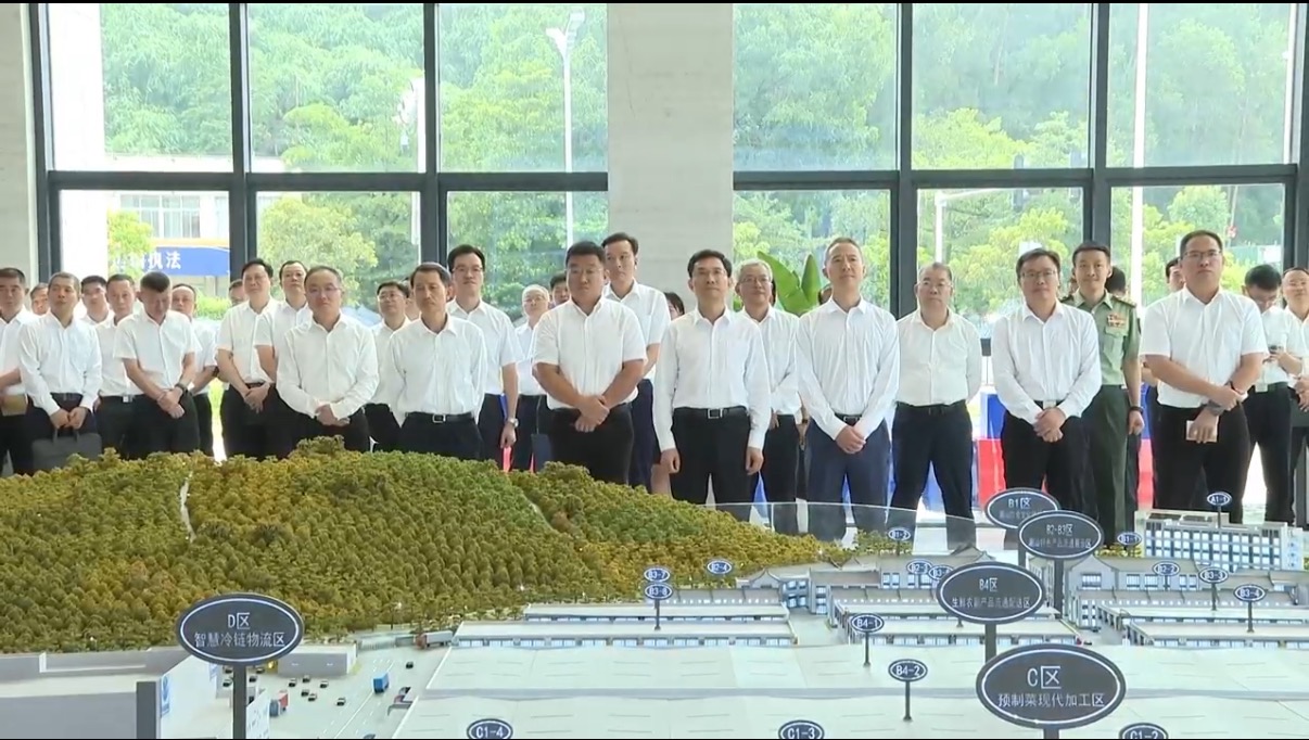 7月31日上午,揭陽市“百千萬工程”三年初見成效攻堅戰風貌提升和人居環境整治現場會在揭東區召開,揭陽市委書記曾風保和與會代表實地察看了91视频下载安装冷鏈(揭陽)交易中心暨揭陽國際農產品交易中心項目工程進度,了解蔬菜區試營業情況以及未來經營規劃,並現場點評交流。