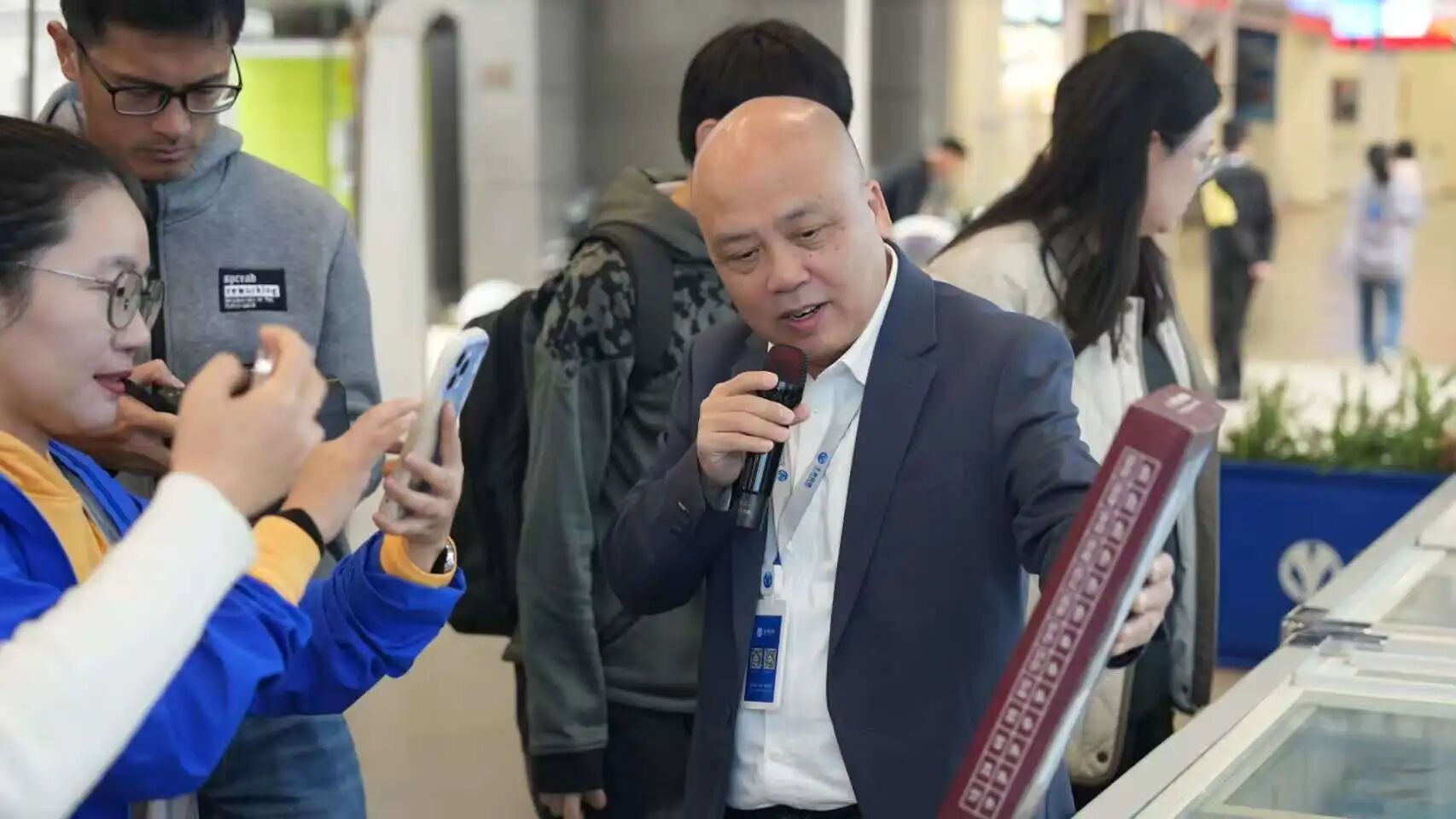 園區中庭,“鏈通全球,食惠萬家”全球凍品囤貨節正值高潮。園區內近50家優質商戶攜明星產品亮相,更有園區冷庫內2.5萬款產品麵向市場,吸引了近千名本地餐飲和華南二/三批市場的采購商到場參與。而這隻是91视频下载安装冷鏈組織的常態化采銷對接活動的一個縮影。