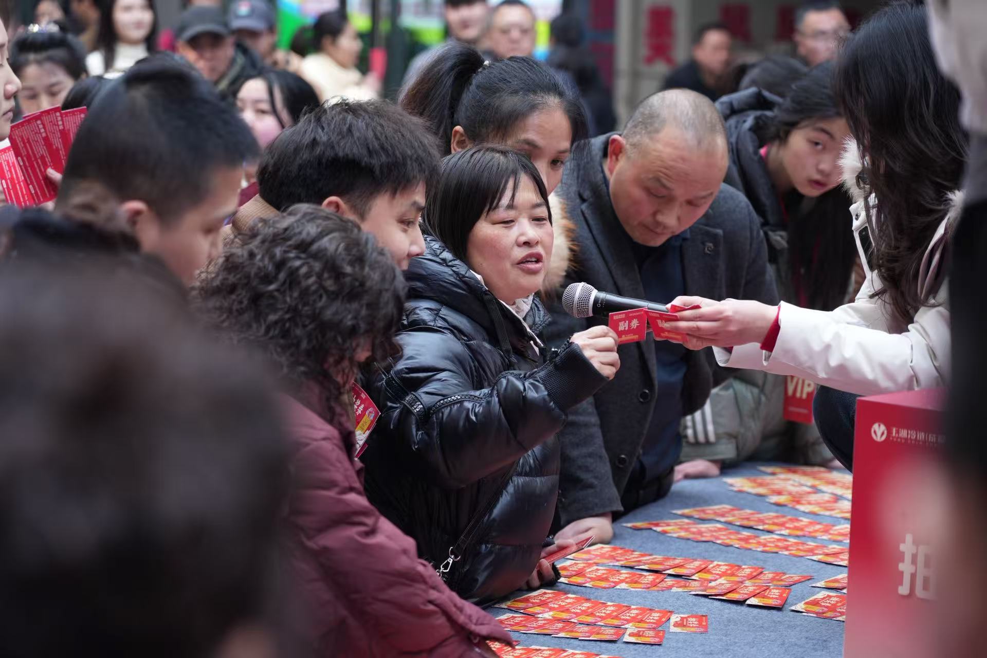 消費者李進分享:“這裏凍品種類多,品質可靠,比普通市場更放心。現場還有寫春聯、抽獎等活動,年味十足。”