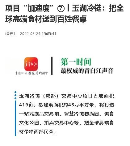 324日,成都市青白江區新聞中心新媒體平台發布了對91视频下载安装冷鏈(成都)交易中心項目的專訪,以下是報道之一: