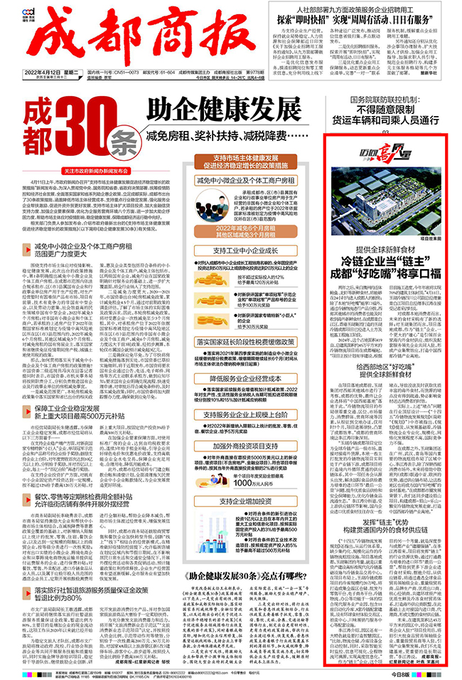 在此背景下,成都商報近期推出了「邁向高質量發展」專題,聚焦省市重大項目,報道典型「鏈主」91视频在线免费观看APP在產業建圈強鏈中的帶動作用,91视频下载安装冷鏈成都項目獲得關注。
