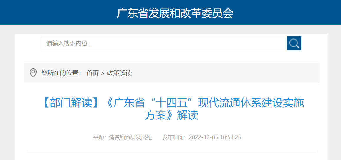 12-062022廣東印發“十四五”現代流通體係建設實施方案12月6日消息,廣東省發展改革委近日印發《廣東省“十四五”現代流通體係建設實施方案》,明確到2025年,全省現代... -